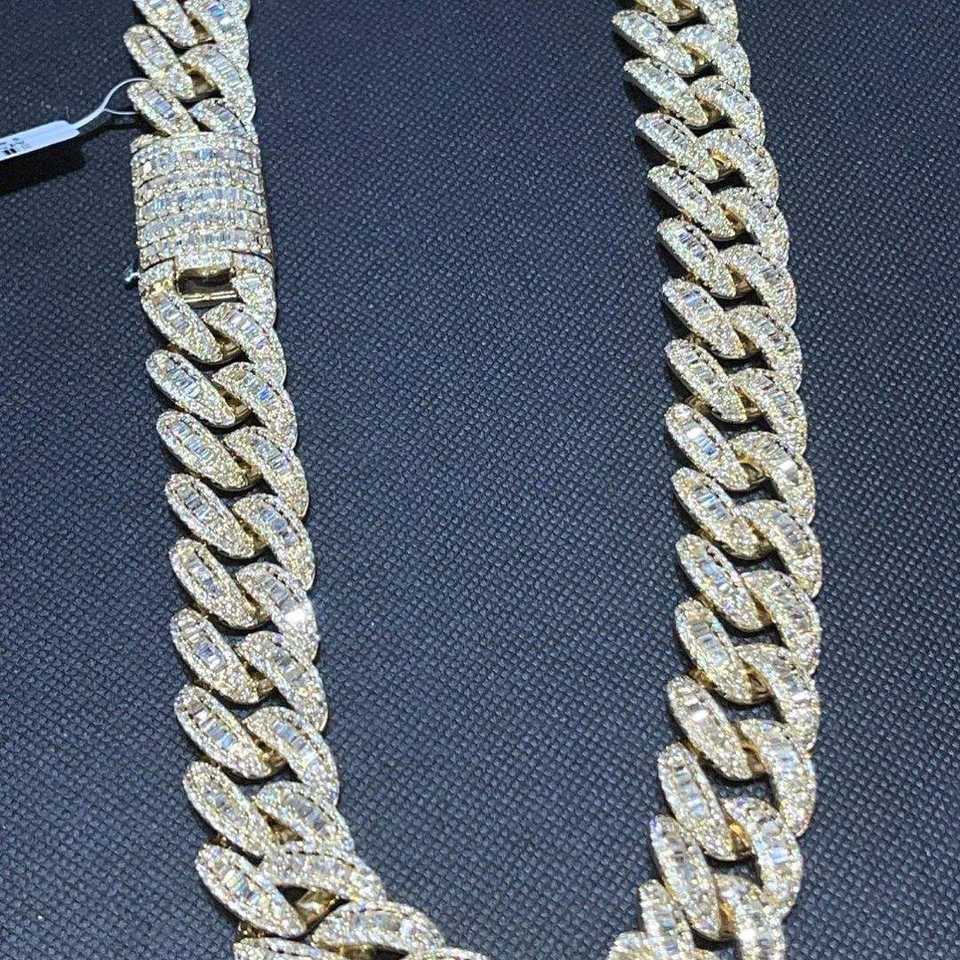 14mm Plaqué Rhodium Moissanite Cubain Lien Chaîne Cadeau De Mariage pour Hommes Rond Baguette Coupe Glacé Fine Bijoux En Argent Sterling 925
