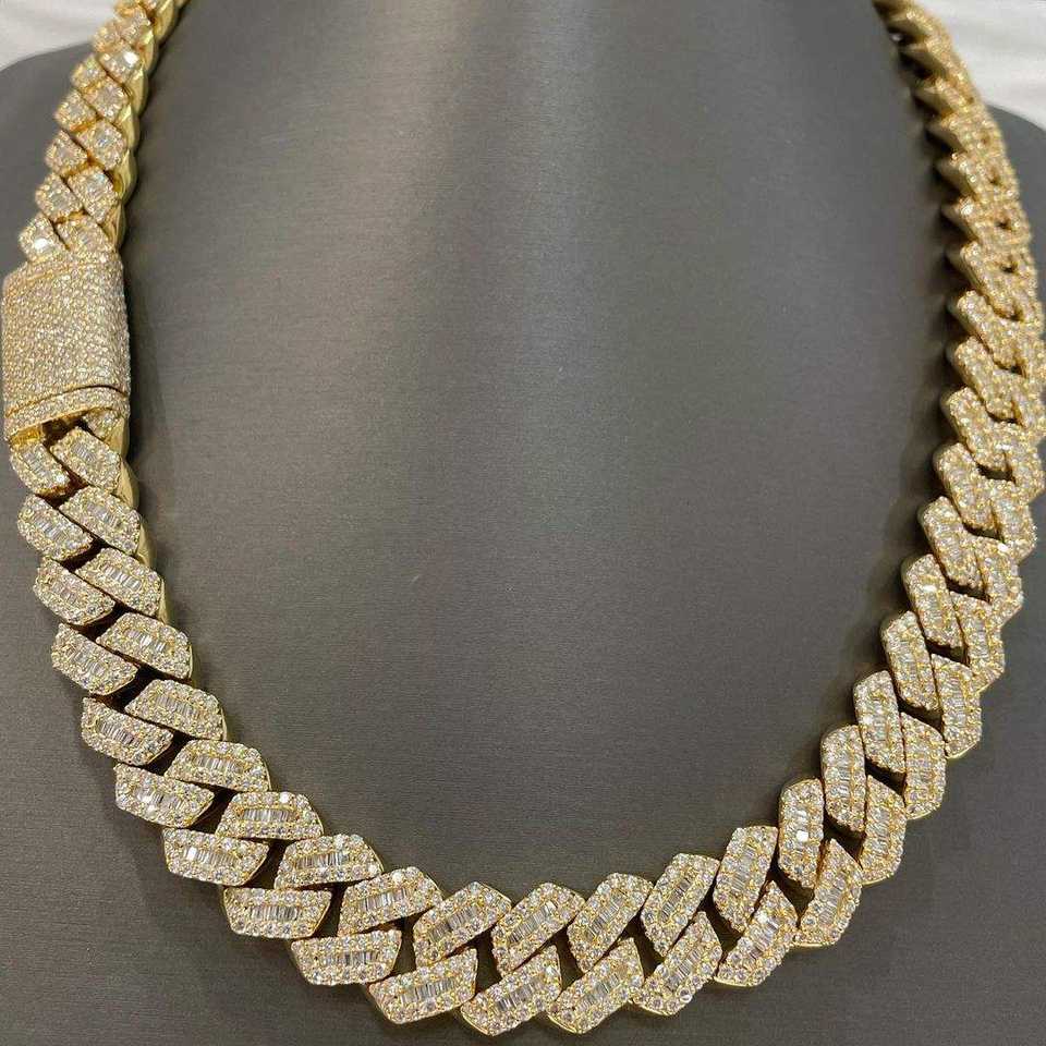 14mm Plaqué Rhodium Moissanite Cubain Lien Chaîne Cadeau De Mariage pour Hommes Rond Baguette Coupe Glacé Fine Bijoux En Argent Sterling 925