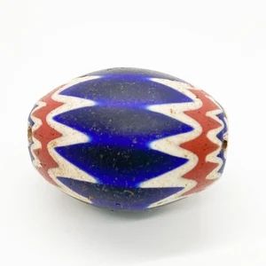 14x10mm Petites perles Chevron rouges et bleues Perles de commerce en verre Perles de chalumeau faites à la main Rouge Blanc