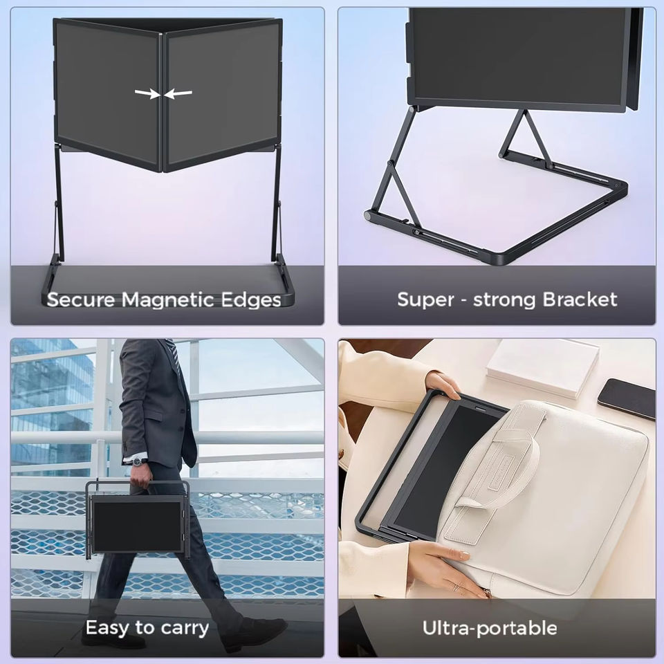 Ordinateur portable à écran quadruple 15,6 pouces avec large gamme de couleurs, écran pliable en trois parties avec panneau IPS et interface USB, écran LCD