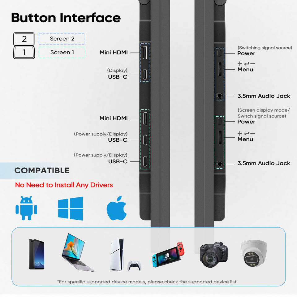 Nom du produit:Moniteur portable double écran 15,6 pouces pour ordinateur portable