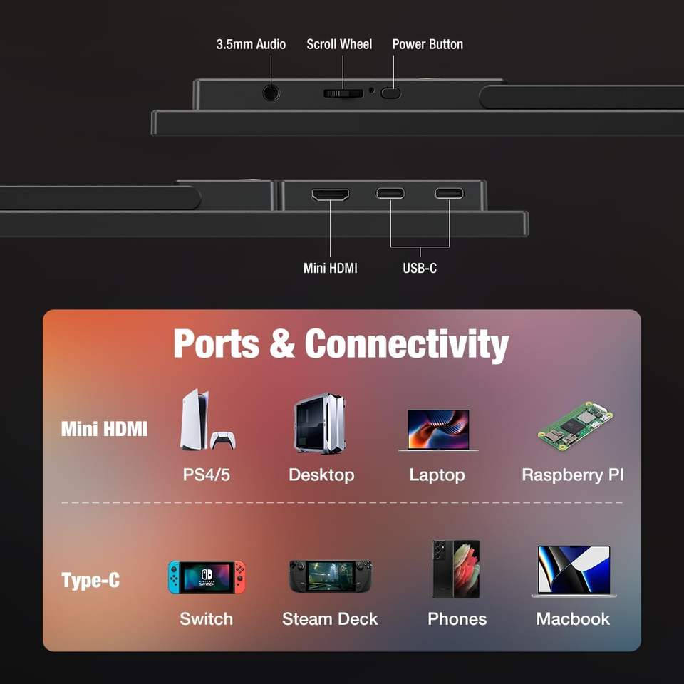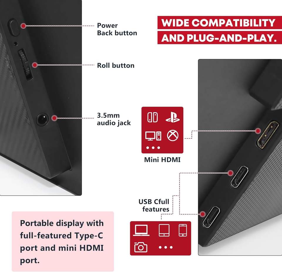 Écran portable 15,6 pouces USB-C 1080P 60Hz FHD IPS prenant en charge la charge PD pour MacBook Pro Dell XPS