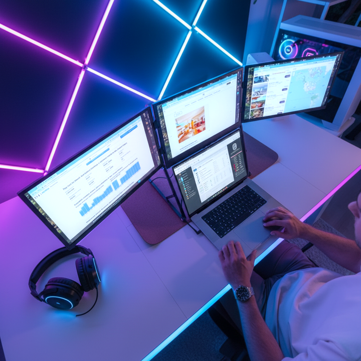 Écran d'extension portable pour ordinateur portable 15,6 pouces, moniteur quadruple, seulement 1 câble pour 3 écrans, FHD 1080P IPS, compatible avec les ordinateurs portables