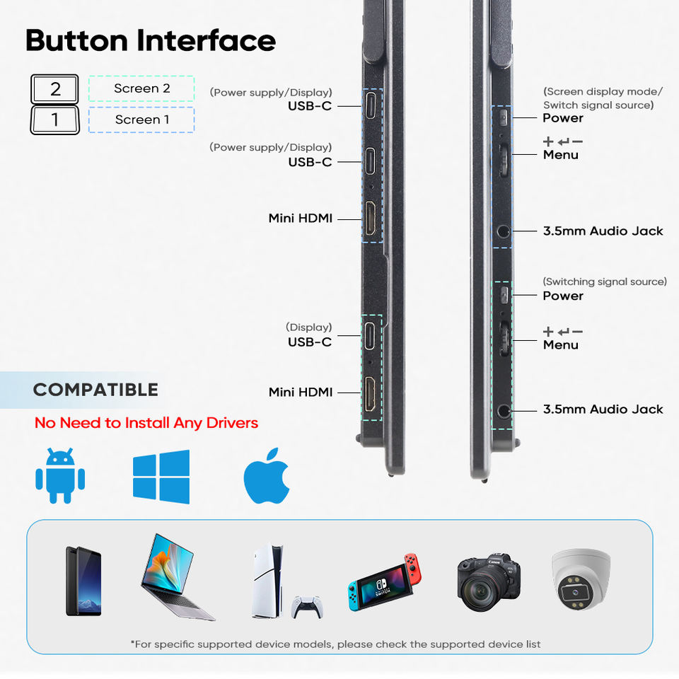 Nom du produit:Moniteur portable à double écran de 15,6 pouces pour ordinateur portable