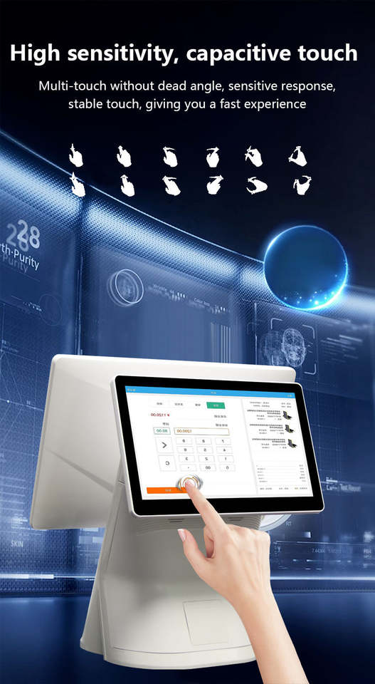 Terminal de point de vente tout-en-un pour restaurant, écran tactile 15,6 pouces, système Windows/Android, avec écran client 11,6 pouces