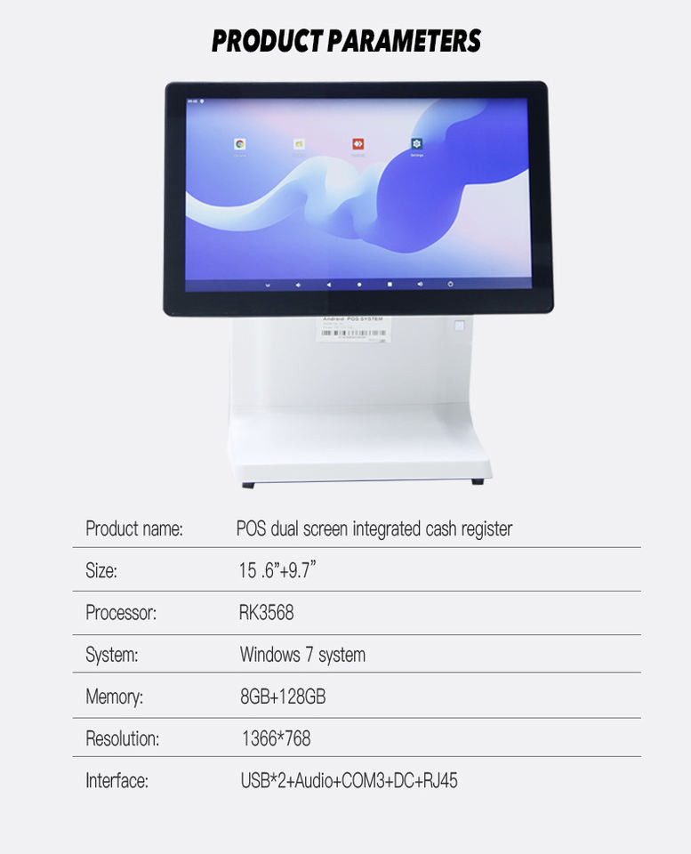 Caisse enregistreuse Pos à écran tactile de 15.6 pouces avec affichage client de 9.7 pouces pour magasin de détail