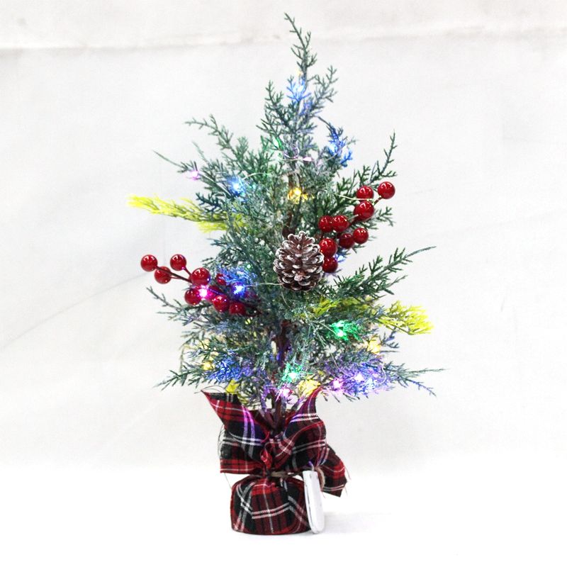 Mini sapin de Noël artificiel de 15.7 pouces avec des lumières LED en épicéa réalistes Bassin inférieur en lin grossier en ciment massif