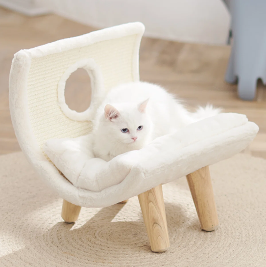 Lit pour chat de luxe de 15,8 pouces avec griffoir en sisal, coussin en peluche super doux et pieds de support en bois massif