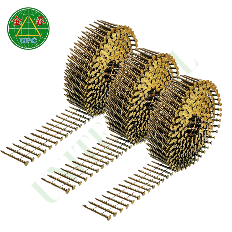 15 Degree Coil Nail 1-1/4" with 14000pcs OEM Steel Iron Wire Yellow Coating Ring/Smooth/Screw Shank Spiral Type Made in Vietnam