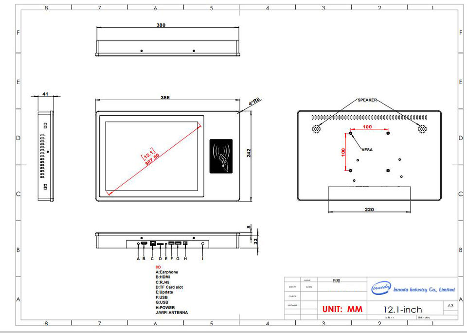 Nom du produit:PC androïde de comprimé de Chambre en aluminium en métal avec le lecteur de cartes de Mifare