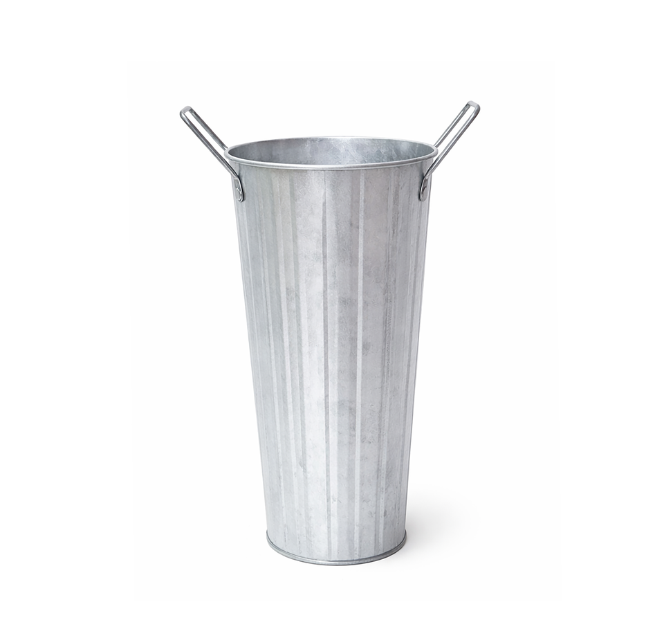 Seau à fleurs en étain galvanisé de 15 pouces - Seau à fleurs de style campagnard pour bar à fleurs avec poignées, vase à fleurs en métal pour la maison et le jardin