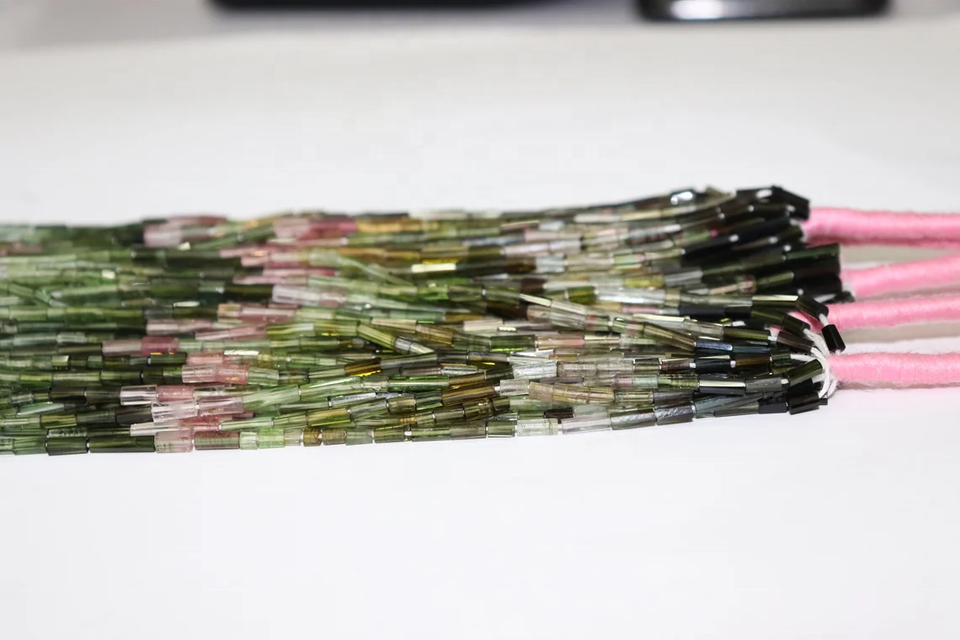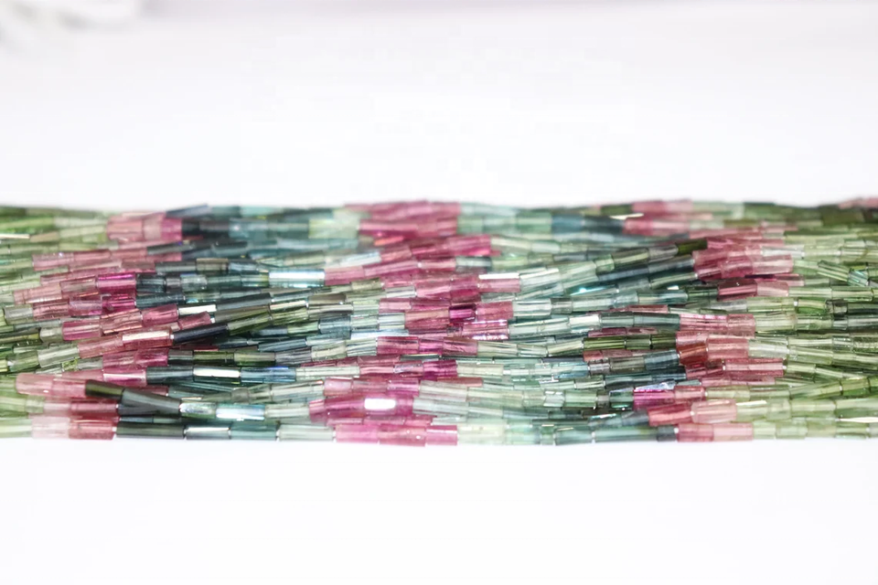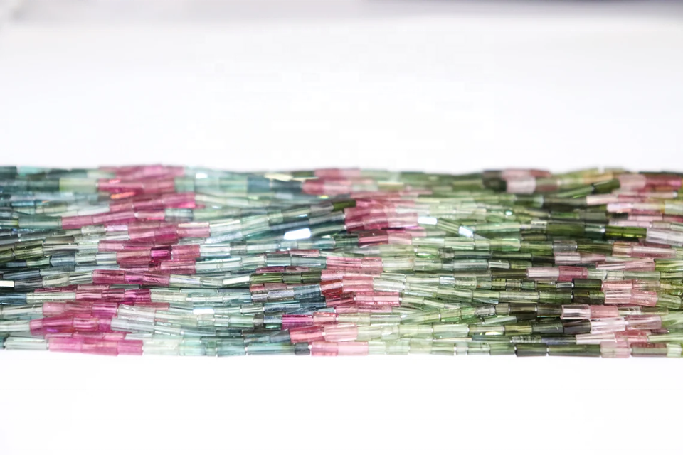 Nom:Perles multi-tourmalines à facettes en forme de tube