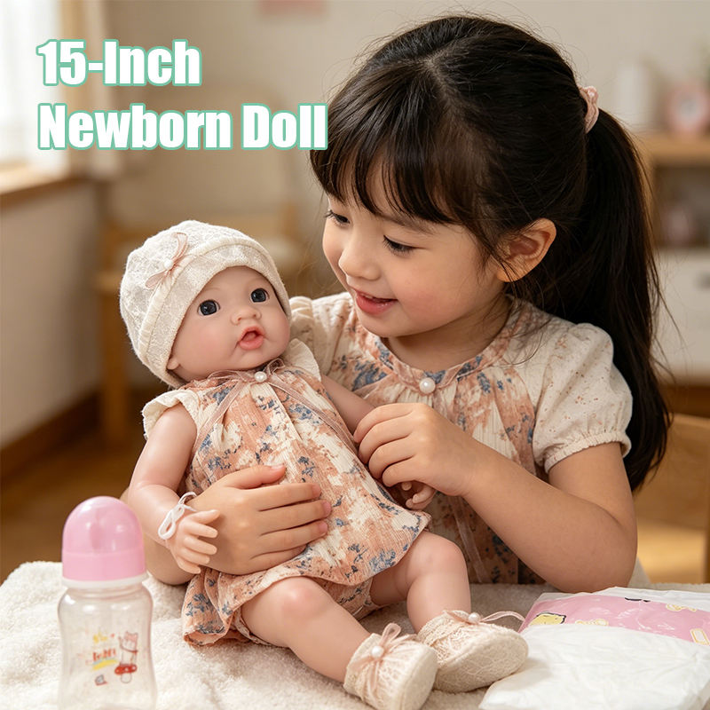 15-Inch Newborn Doll Toy Set With Pillow/Pacifier/Diaper/Bottle