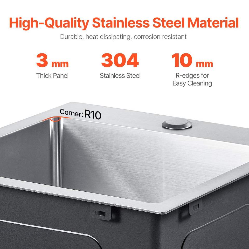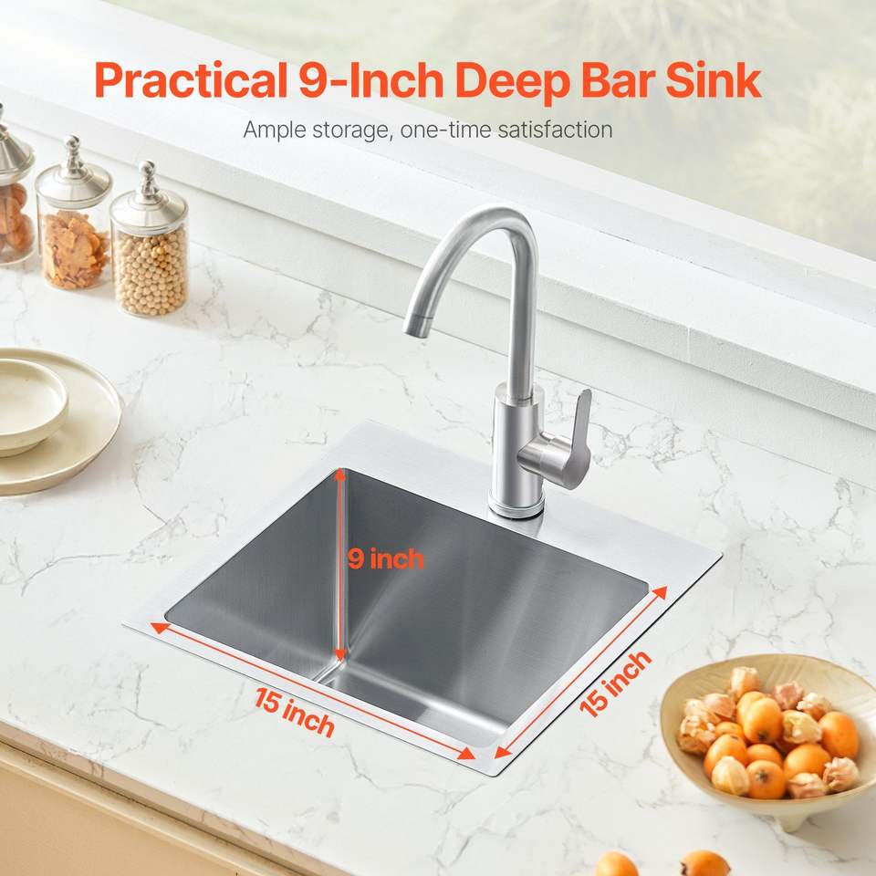Évier de cuisine style ferme à cuve unique de 15 pouces, poste de travail en acier inoxydable 304, à encastrer, avec accessoires inclus