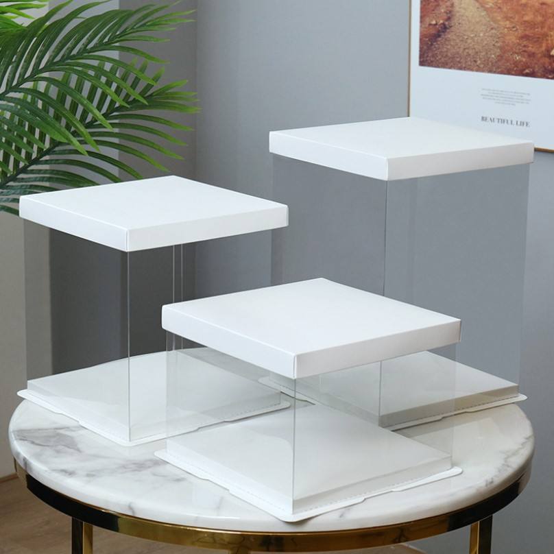 Boîte à gâteau carrée transparente, de grande taille, bordure en plastique, Base forte, grand, 28x15 pouces