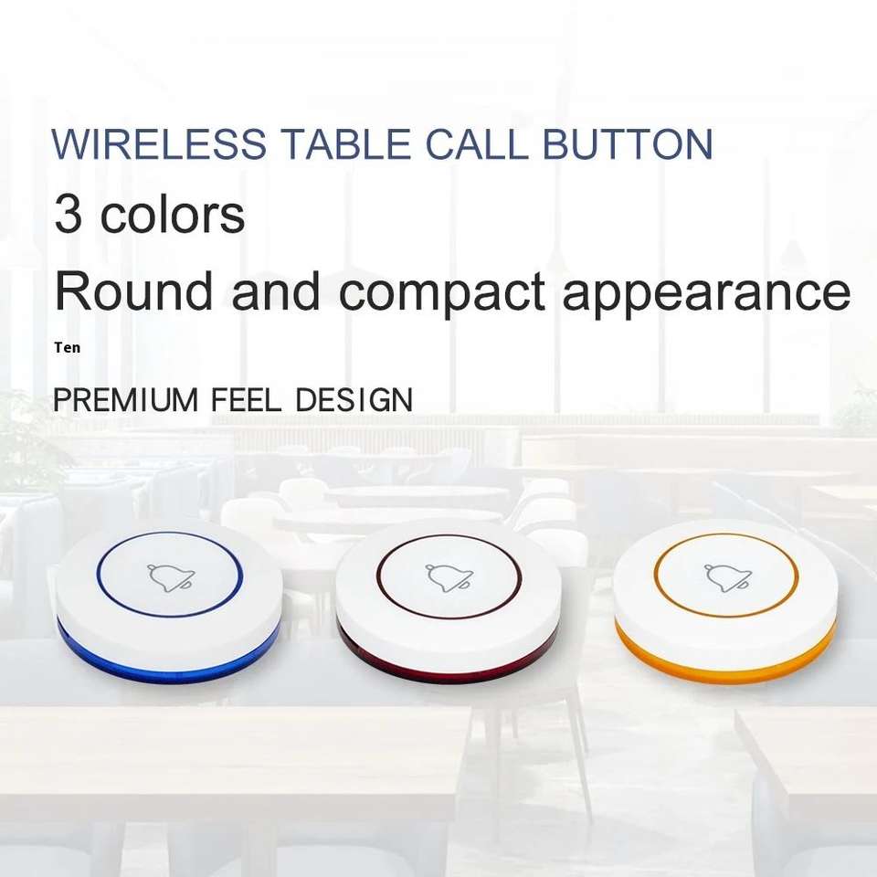15 boutons d'appel pour table/chambre + 1 récepteur d'affichage + 2 pagers de serveur - Système d'appel sans fil pour restaurant