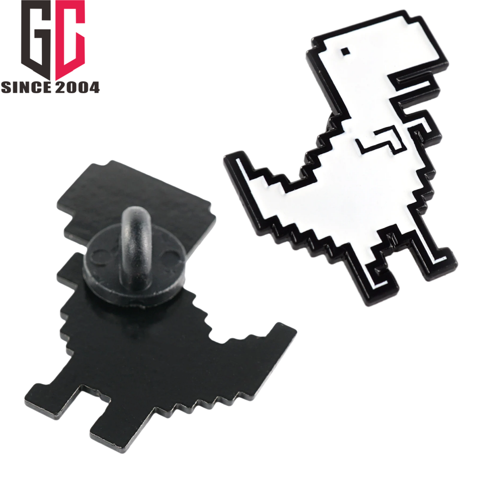 15 ans d'usine personnalisé blanc 8 bits T-Rex dinosaure métal émail épinglettes rétro Pixel caméra badge broche