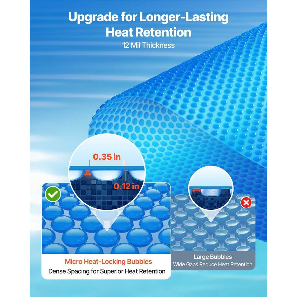 Couverture solaire ronde pour piscine de 15 pieds, en PE bulle de 12 mil, absorption de chaleur diurne pour piscines et spas