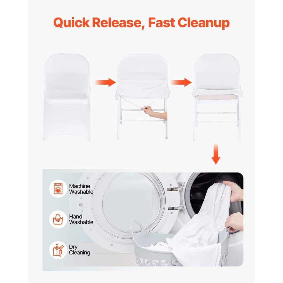 150 housses de chaise blanches en polyester et élasthanne, extensibles, à devant plat, pour mariages, réceptions ou banquets