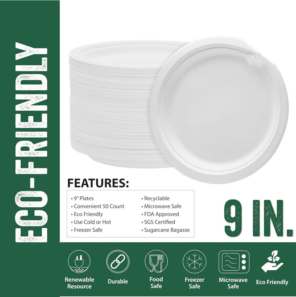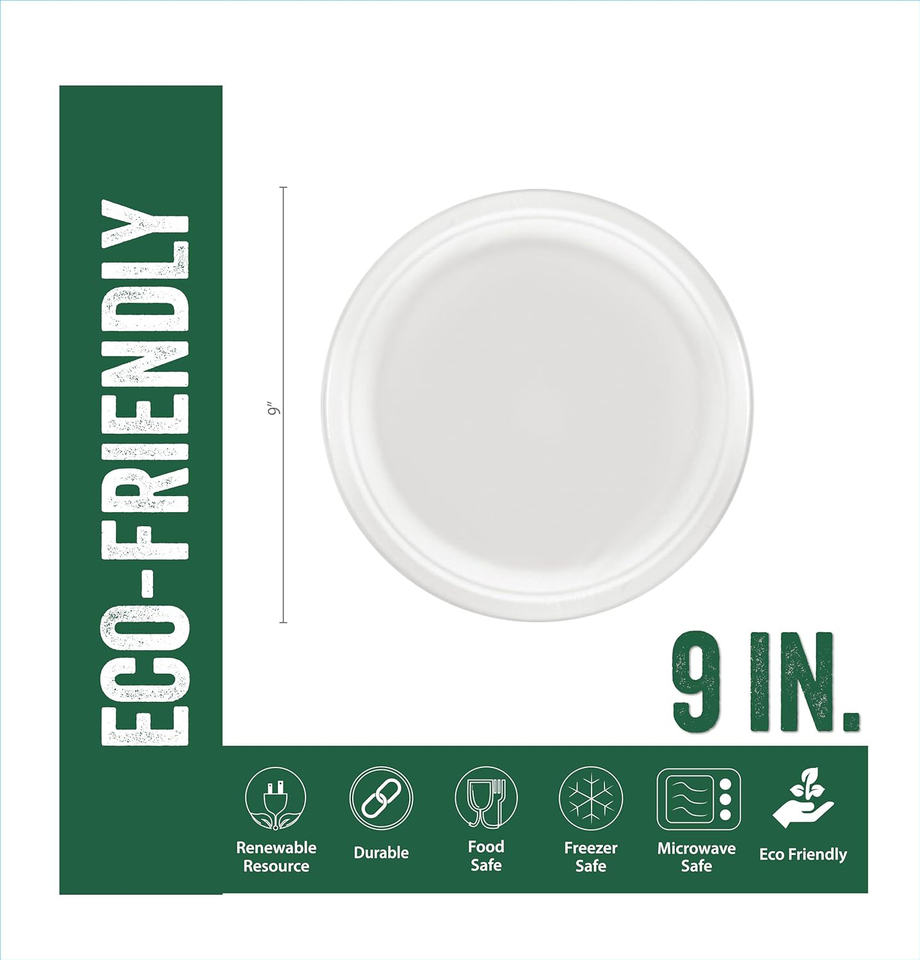150 pièces Heavy Duty 100% Compostable Blanc 10 pouces Assiettes Jetables Eco Sugarcane Fiber Biodégradable Assiettes Bagasse