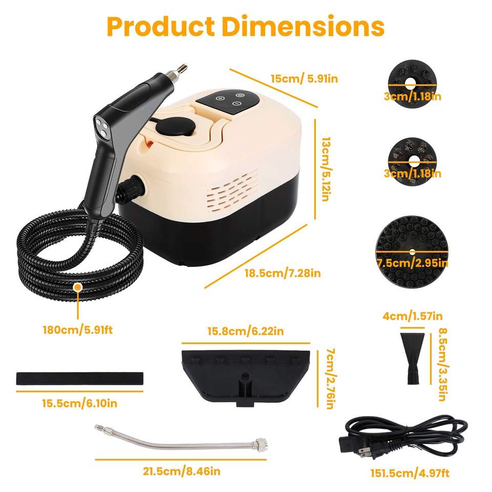 Nettoyeur Vapeur Haute Pression Portable à Affichage Numérique 1500W, Réservoir 1200ML avec 8 Accessoires et 6 Niveaux de Vapeur