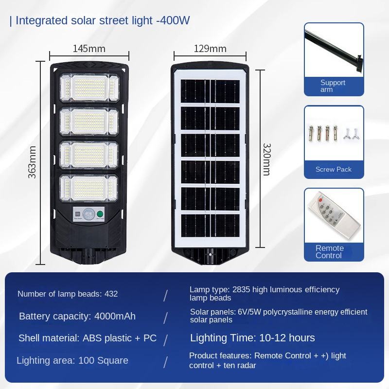 Luminaire de rue solaire à lumière blanche CT-4642 300W 6400K