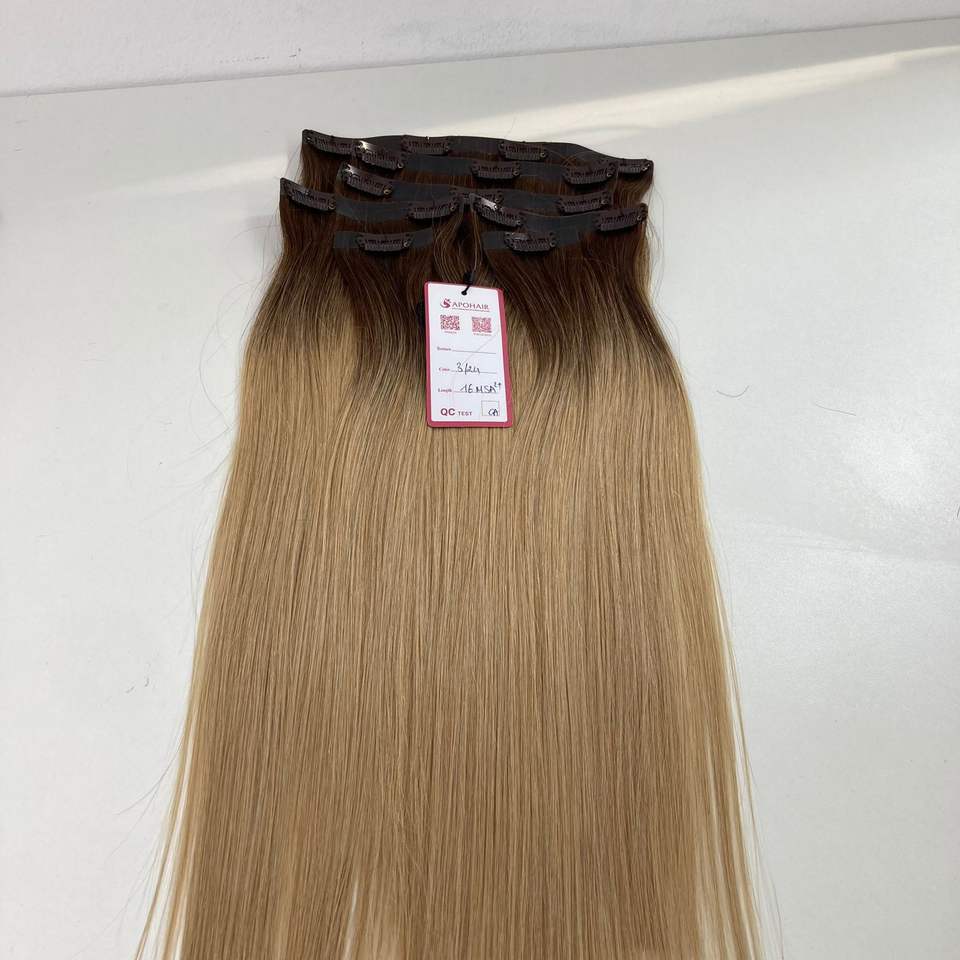 150 grammes 16 pouces brut vierge vietnamien Double dessiné Ombre 3/24 Clip droit dans les extensions de cheveux humains 7 pièces Double dessiné qualité