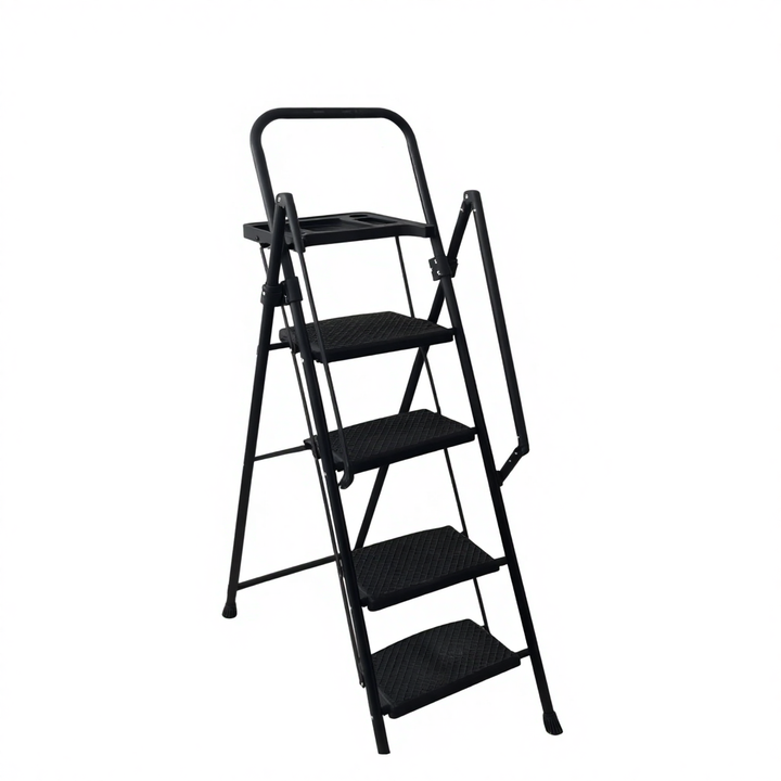 Échelle à marches en acier pliable moderne de 150 kg de capacité pour les réparations à domicile, le bricolage, les décorations festives
