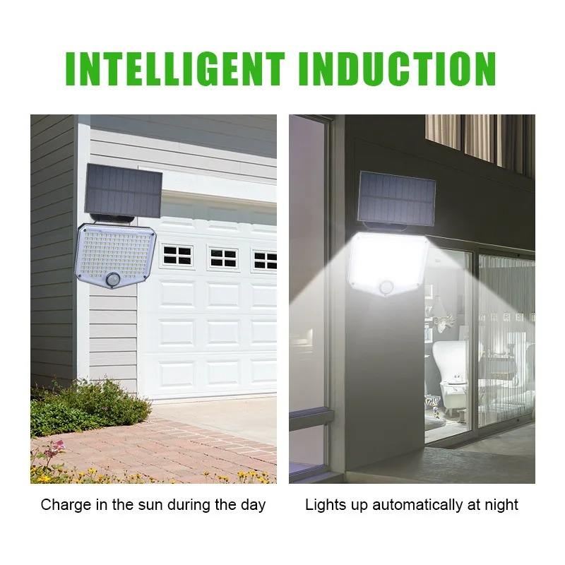 Lampe solaire LED extérieure 153 LED, super lumineuse, avec détecteur de mouvement, lampe murale de jardin solaire LED, étanche IP54, 3 modes, projecteur solaire