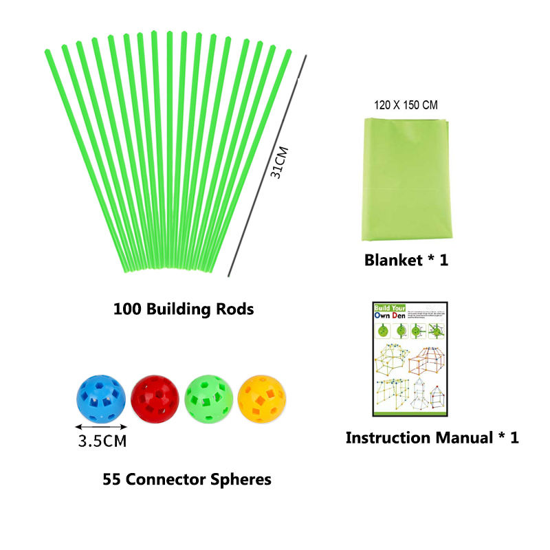 Description:Jouets éducatifs en plastique de bâtiment 100 bâtons + 55 boules + couverture