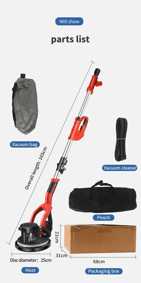 Ponceuse murale électrique puissante de 1580 W à 6 vitesses variables, ponceuse électrique pour cloisons sèches, ponceuse à polir les murs avec aspiration pour plafond