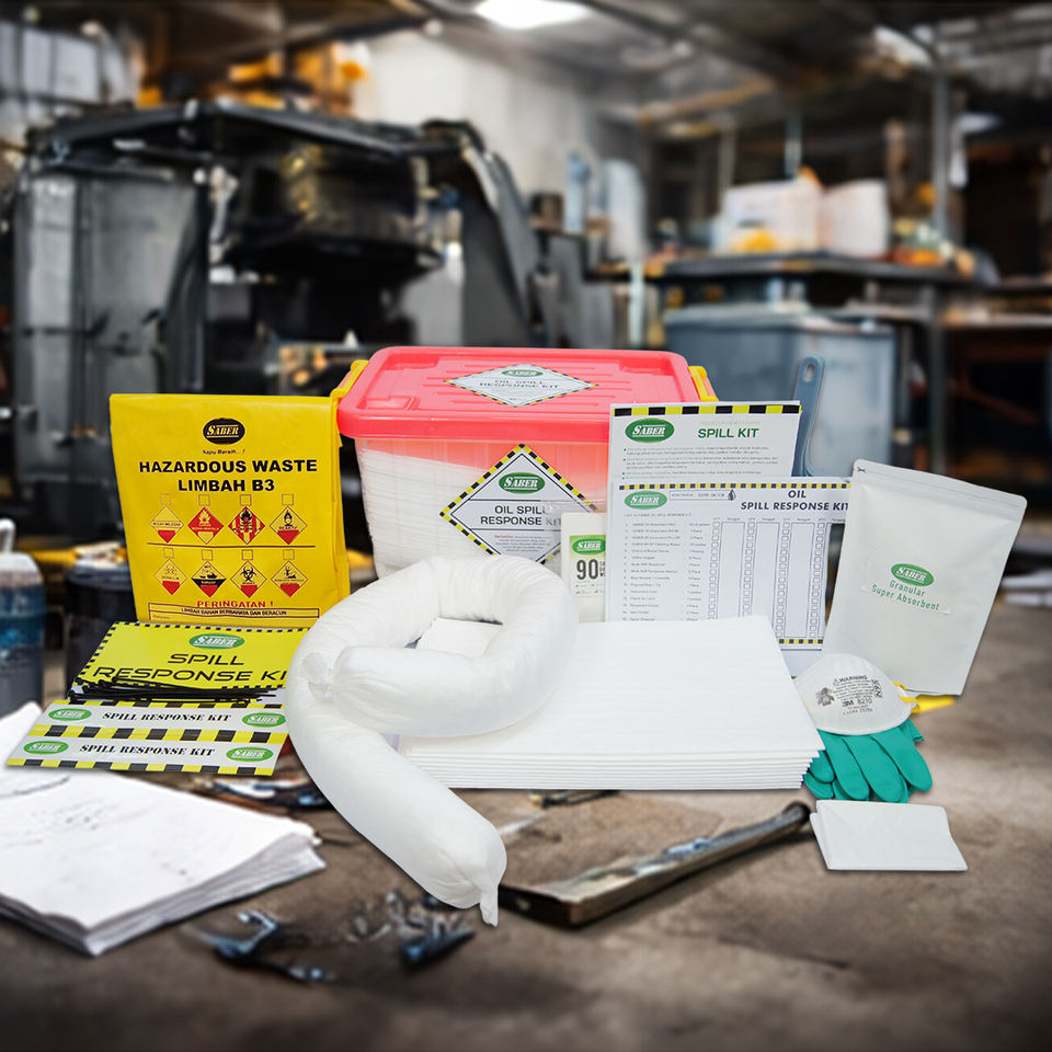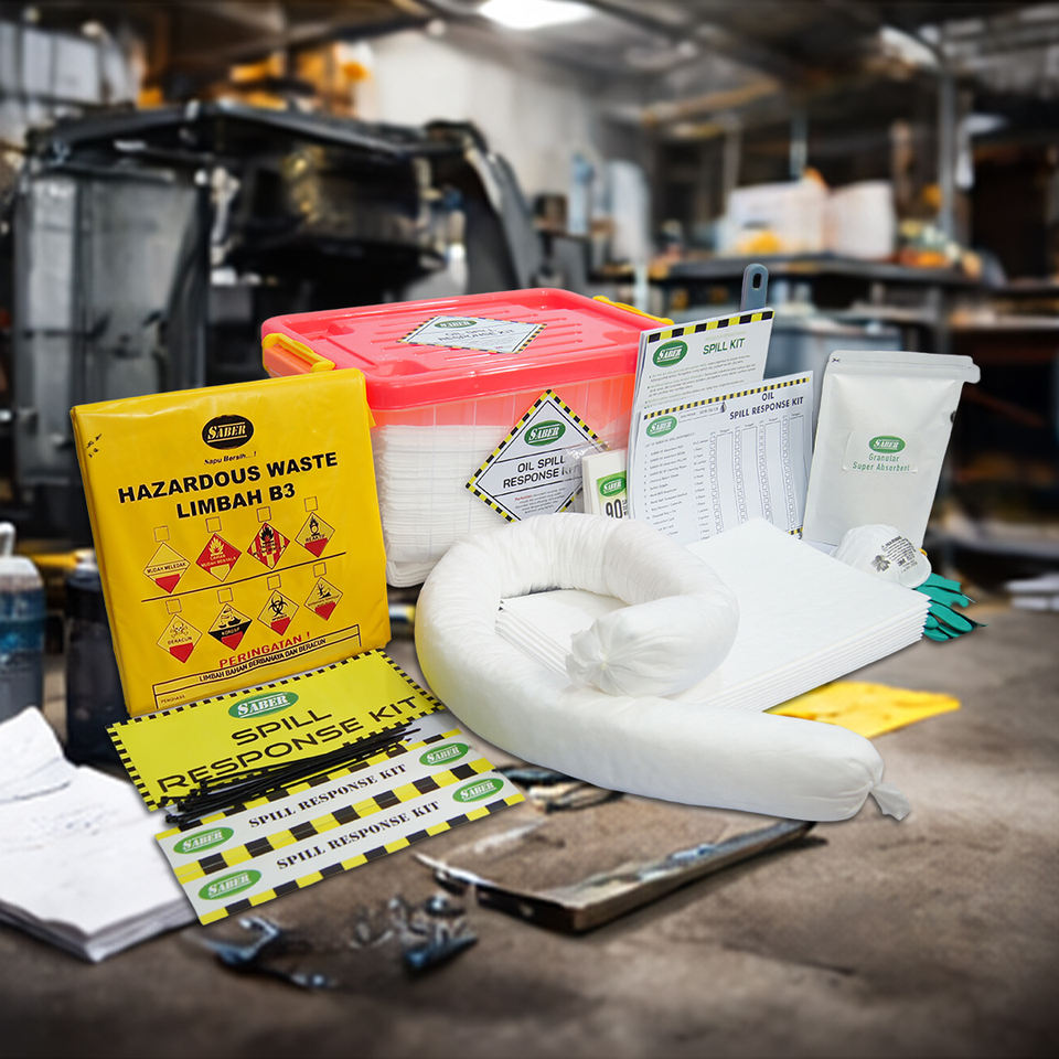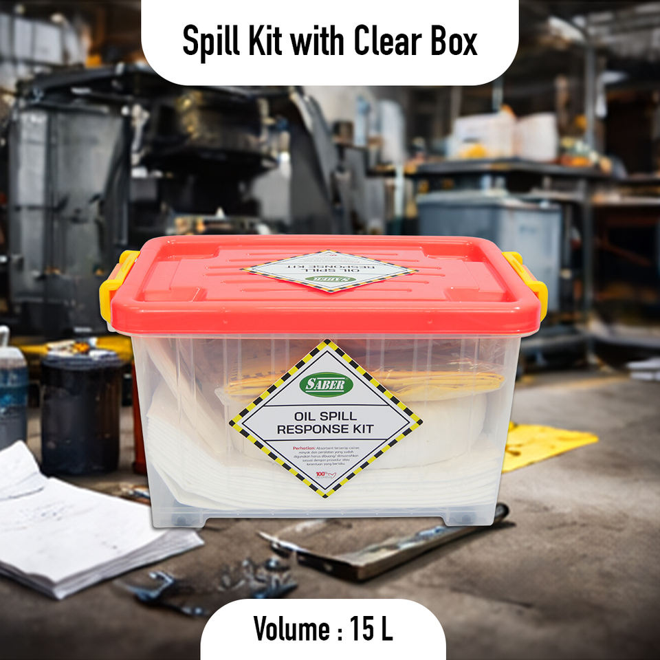 Kit anti-déversement d'huile 15L avec boîte de rangement transparente, tampons et chaussettes absorbantes d'urgence pour atelier et usine