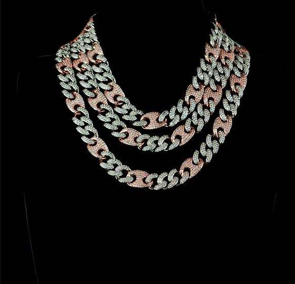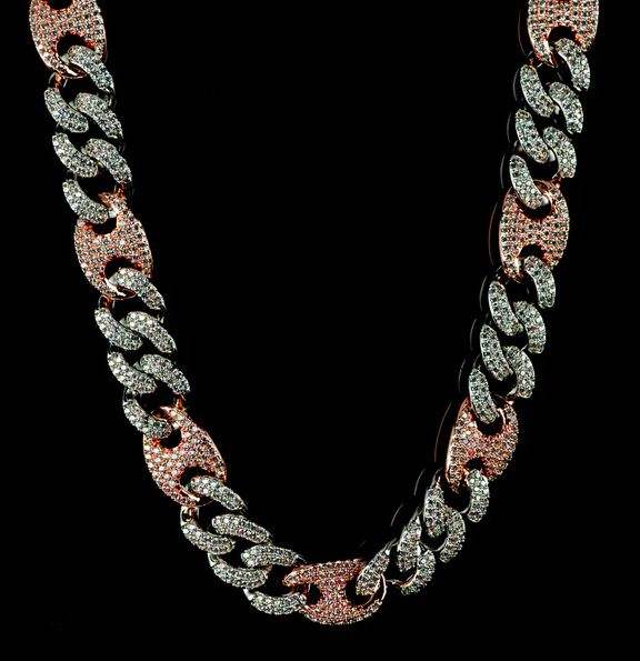 15MM/19MM DIAMOND MARINER CUBAN CHAIN IN TWO TONE ROSE GOLD AND WHITE GOLD