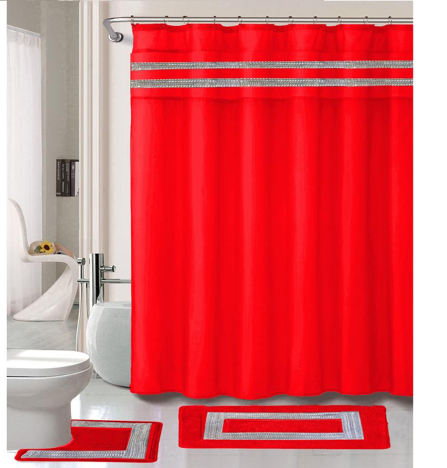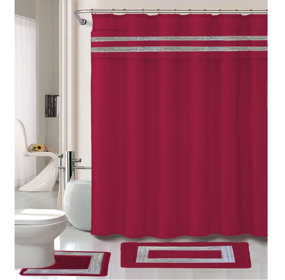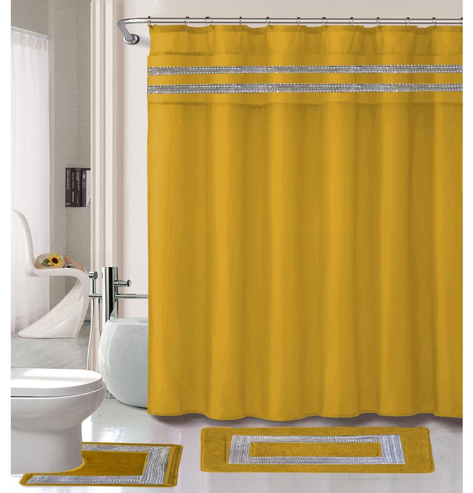Ensemble de tapis de bain 15 pièces, bordé de paillettes, ensemble de salle de bain en tissu, rideau de douche, tapis et ensemble de contour avec crochets en métal