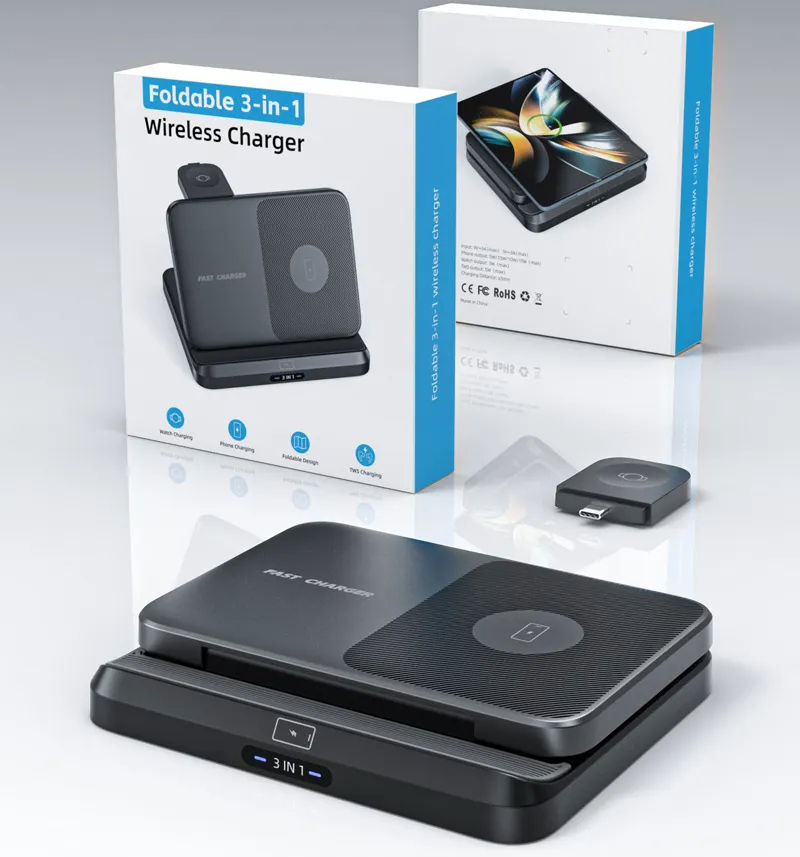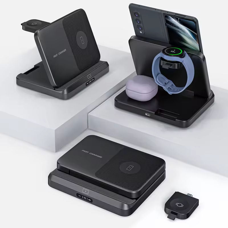 Chargeur sans fil 15W 3 en 1 pour montre pliable Galaxy Z 5/4/3/Active 2/1 Buds/Buds +/Buds Pro/Live