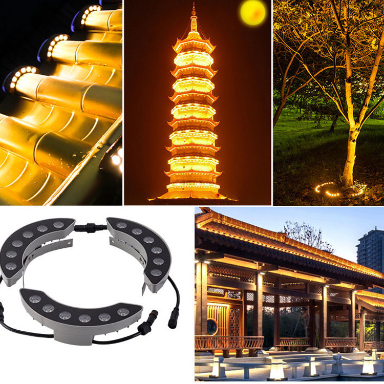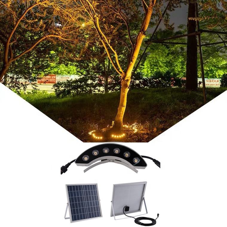 Lampe solaire de jardin LED noire 15W, support pour arbre et colonne, IP65, projecteur paysager extérieur, design en anneau pour les éléments paysagers