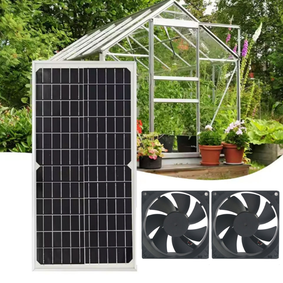 Ventilateur d'extraction à panneau solaire 15W Ventilateur d'extraction double étanche Extracteur d'air pour camping, serre, cuisine, maison pour animaux