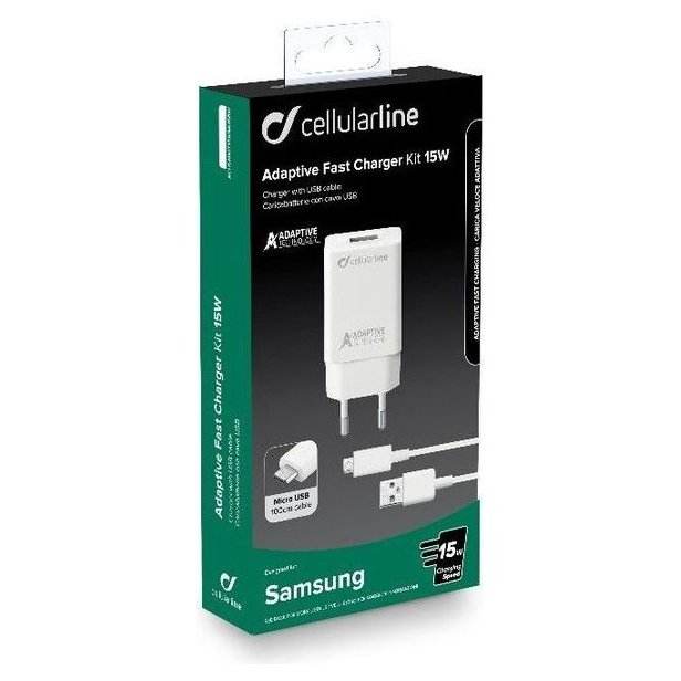 Kit de chargeur rapide adaptatif 15W blanc ACHSMKIT15WMUSBW, câble de transport MicroUSB vers USB Type-A, adaptateurs de charge