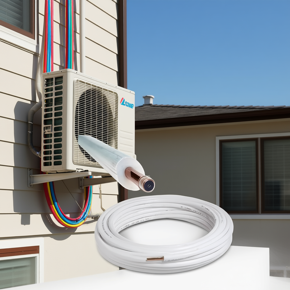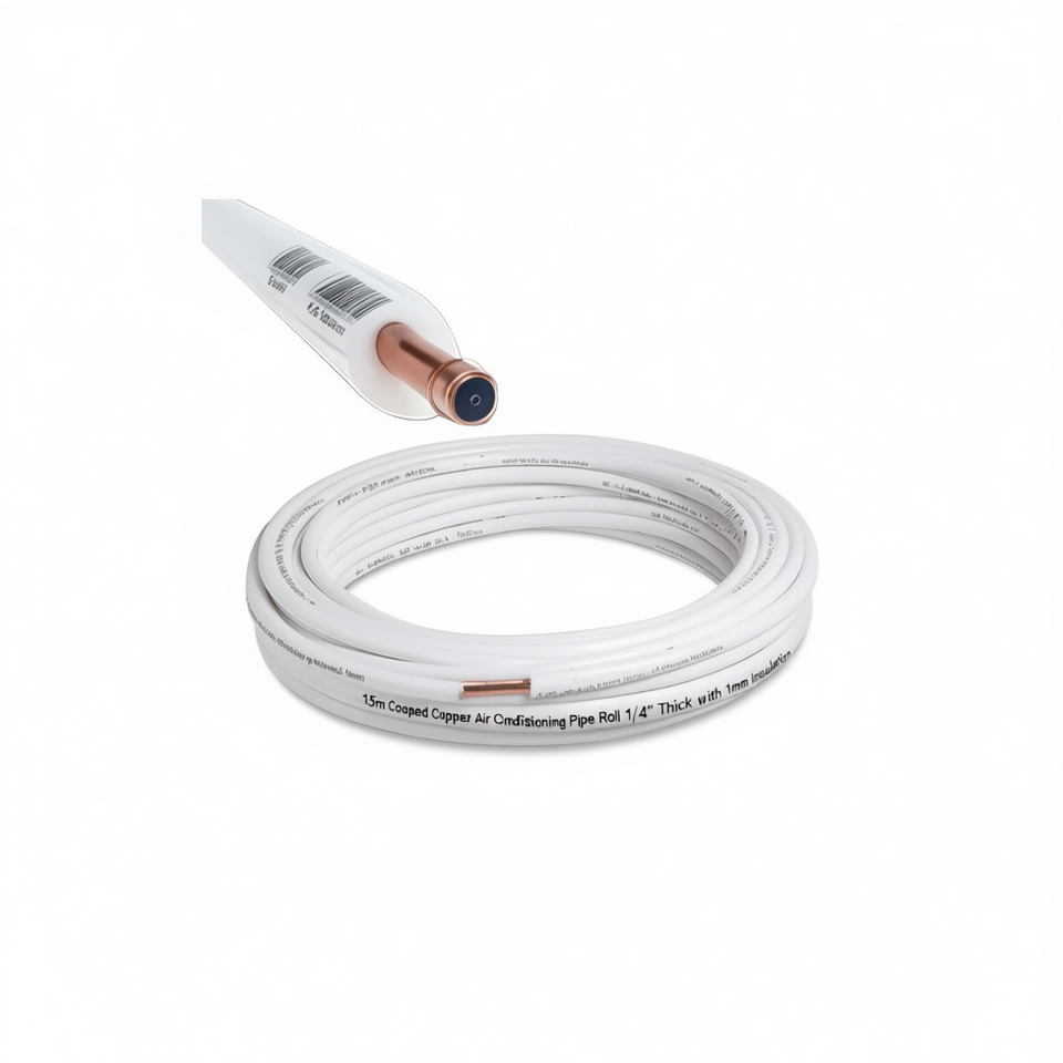 Rouleau de tuyau de climatisation en cuivre recouvert de 15 m, épaisseur 1/4 po avec isolation de 1 mm