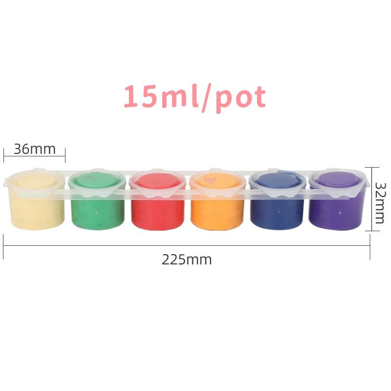 15ml 6 Couleur Lavable Non Toxique Gouache Peinture Ensemble avec Pinceau Aquarelle pour DIY Peinture sur Verre Papier et Toile