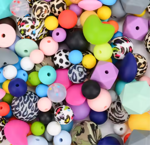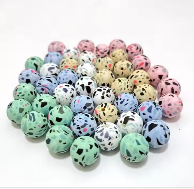 Perles rondes de dentition à mâcher en silicone, 15mm, sans Bpa, multi-motifs, accessoires de bricolage, perles en vrac personnalisées en silicone