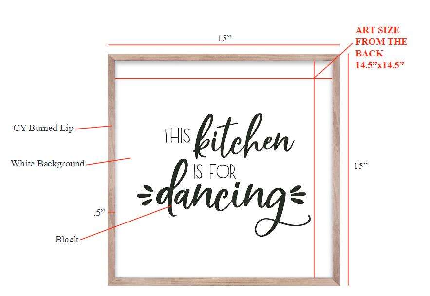 15x15 Inch Recessed Board Art with Wood Lip TThis Kitchen Is for Dancing on Wall Decoration