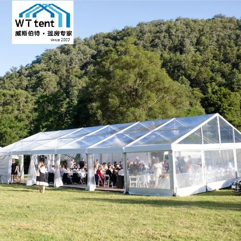 Tente transparente 15x30m, articles de location pour événements de mariage, bâche en PVC, stockage en entrepôt, accessoires de caravane tente église barnum personnalisés