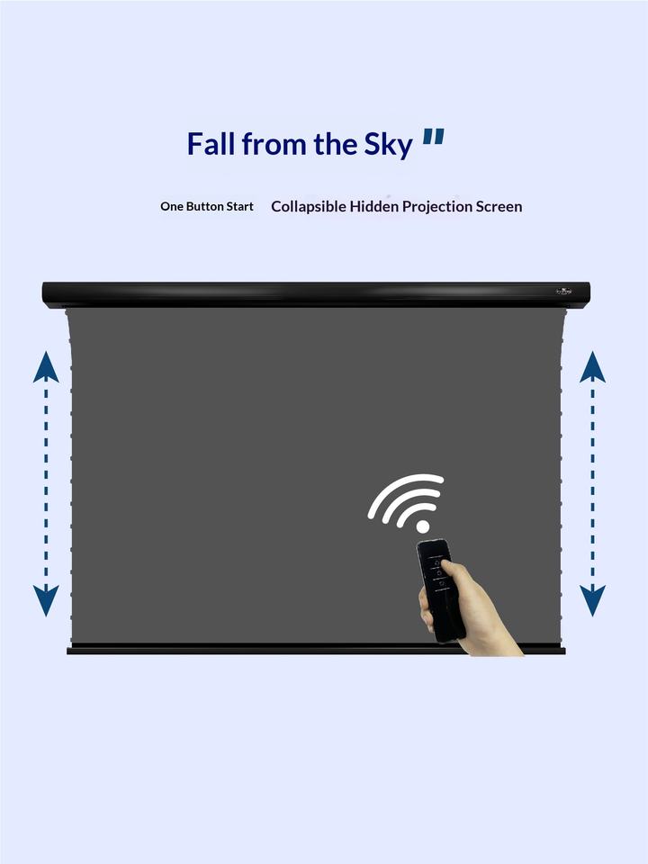 Ratio d'aspect 16:9, peut être fixé au mur et au plafond. Écran motorisé anti-reflet VIVIDSTORM pour cinémas maison.