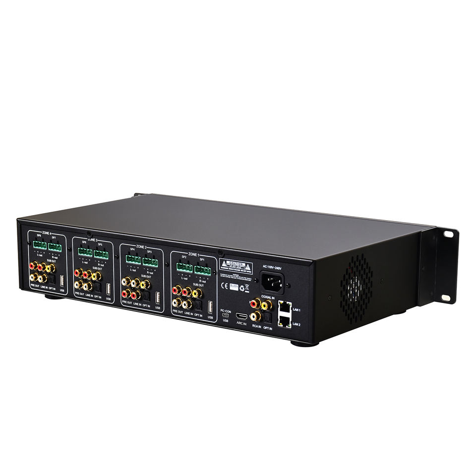 Amplificateur audio stéréo domestique mini 16 canaux 4 zones Cloudyx, classe D, montage mural, micro sans fil, contrôle BT/AirPlay, multi-salle