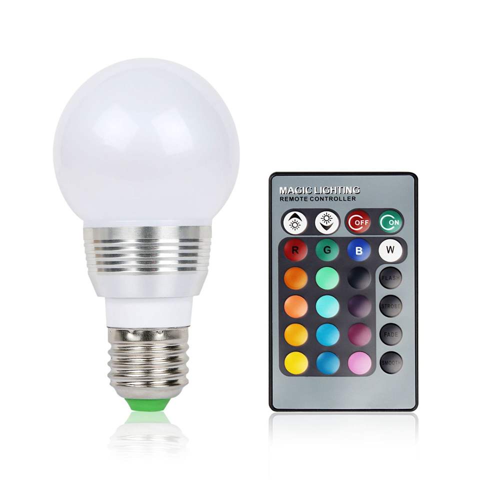 Lampe d'ambiance à 16 couleurs E27 3W RGB à intensité variable avec télécommande, ampoules LED à 16 couleurs pour l'éclairage intérieur automobile