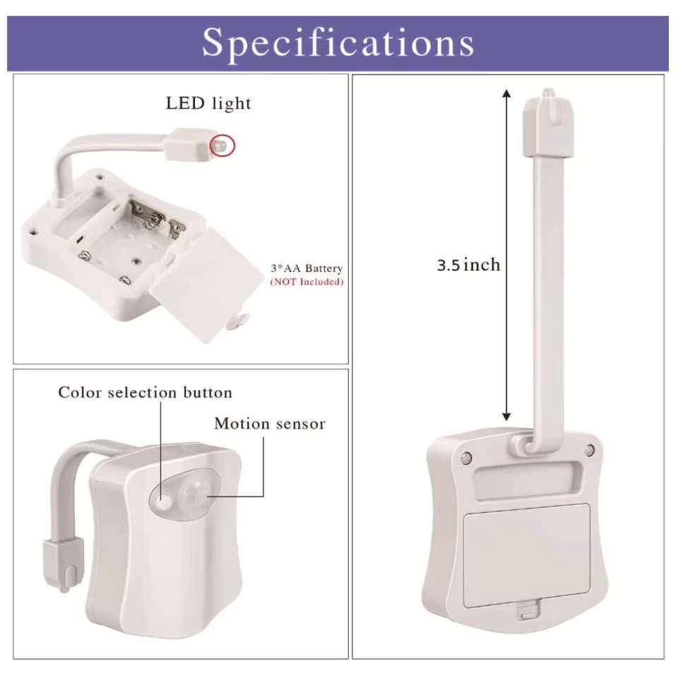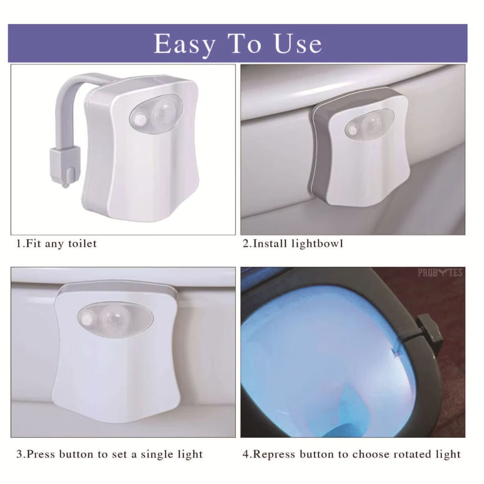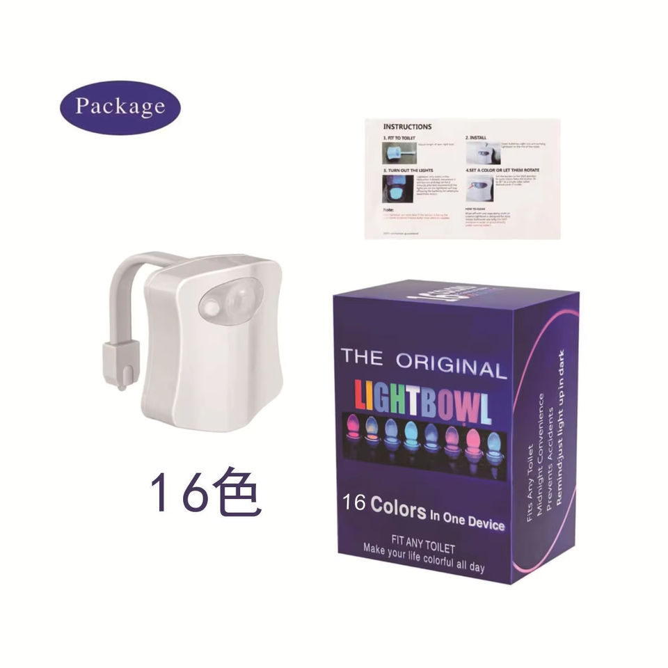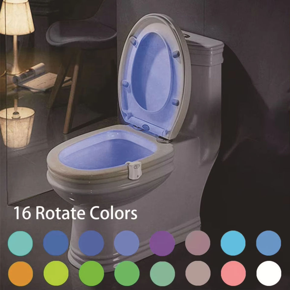 Lumière LED pour siège de toilette, 16 couleurs, capteur de mouvement humain, lampe automatique, lumière nocturne activée par le mouvement, accessoires de salle de bains
