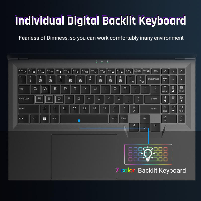 Ordinateur Portable de Jeu Haut de Gamme 16 Pouces 16:10 144Hz avec GPU RTX4060, Clavier Rétroéclairé RGB, Capteur d'Empreintes Digitales et Batterie Longue Durée 90Wh
