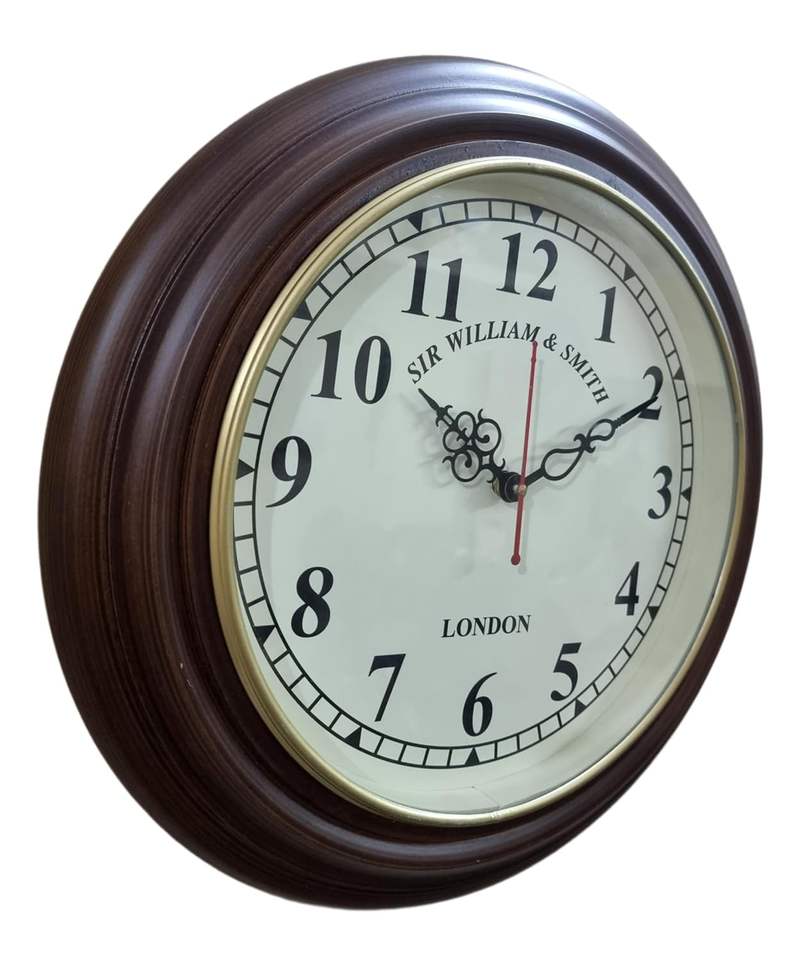 Horloge murale nautique de style antique de 16 pouces, design en laiton marin avec finition en bois, motif en métal quartz, anneau en laiton pour la décoration intérieure