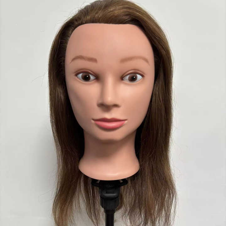 Tête de mannequin 100% cheveux humains marron de 16 pouces pour la pratique de la coiffure des femmes, tête d'entraînement professionnel pour couper et tresser